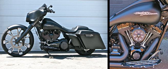 2012 Street Glide customized byWildside motorcycles 26 inc front wheel Paul Yaffe fenders and a 126 ci engine done buy Wildside Performance.